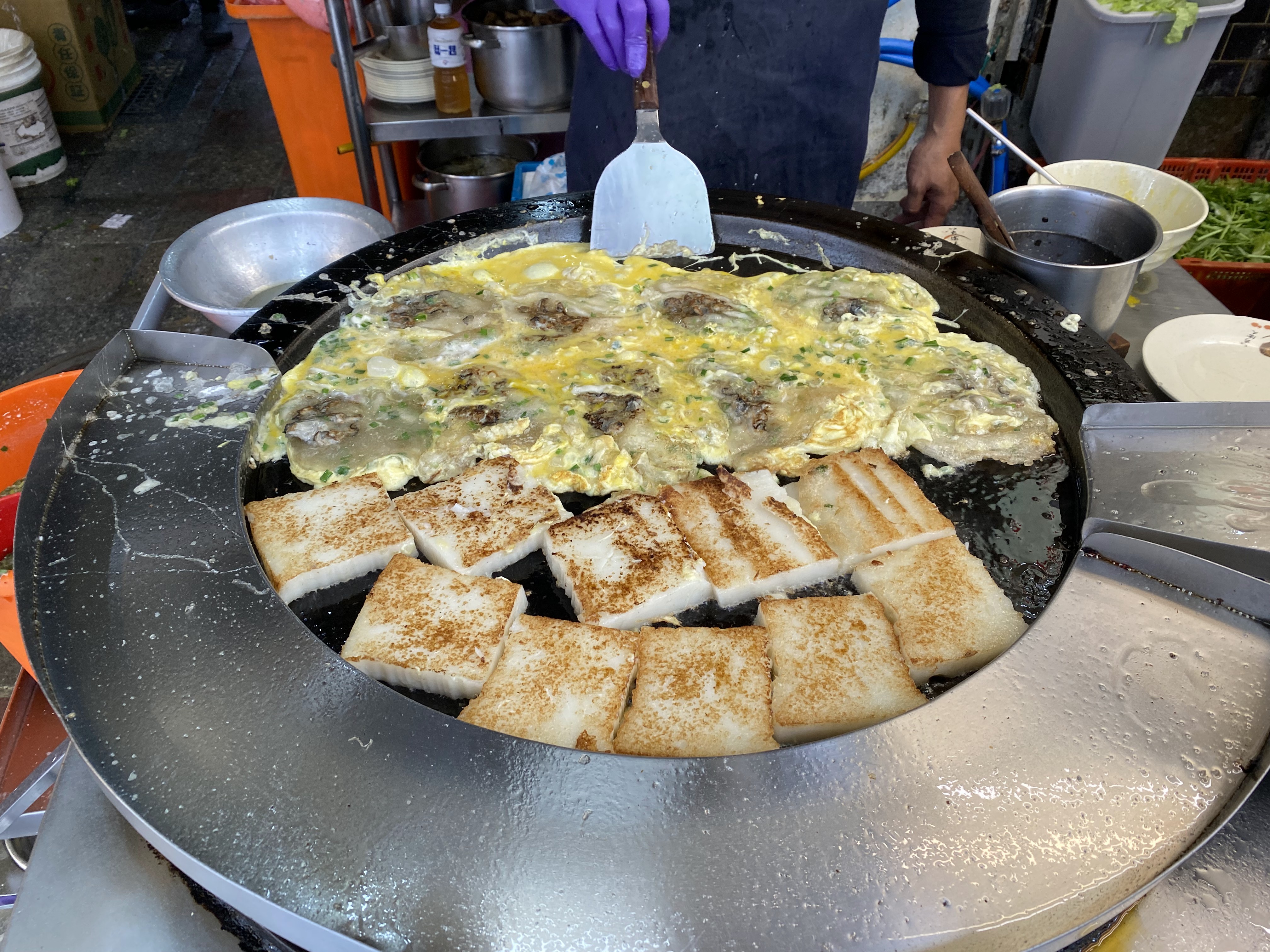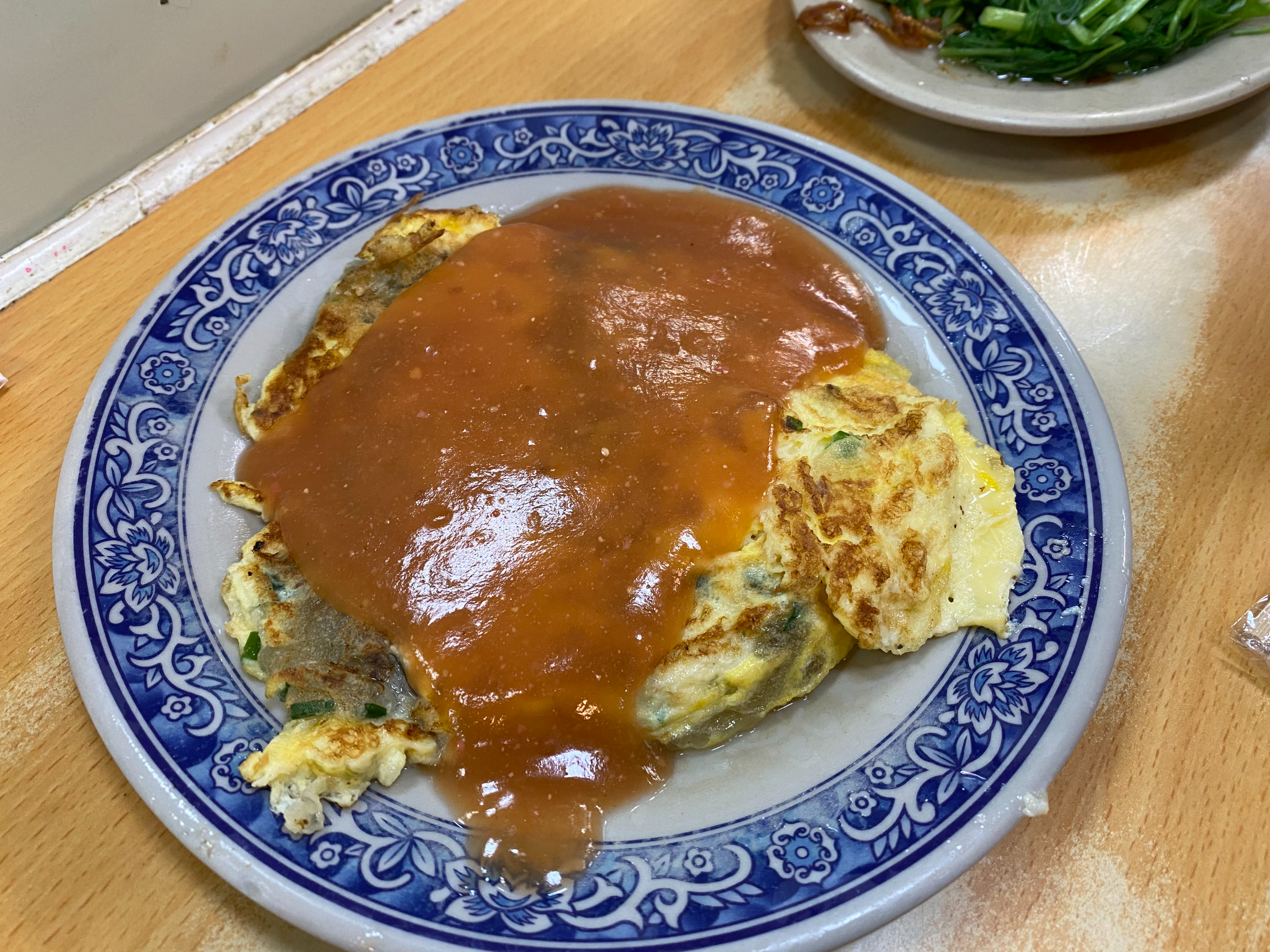 굴, 달걀, 전분을 넣어 만든 대만식 굴 오믈렛이고, 달콤하고 새콤한 소스를 위에 얹어 내는 것이 특징인 메뉴라고 합니다.