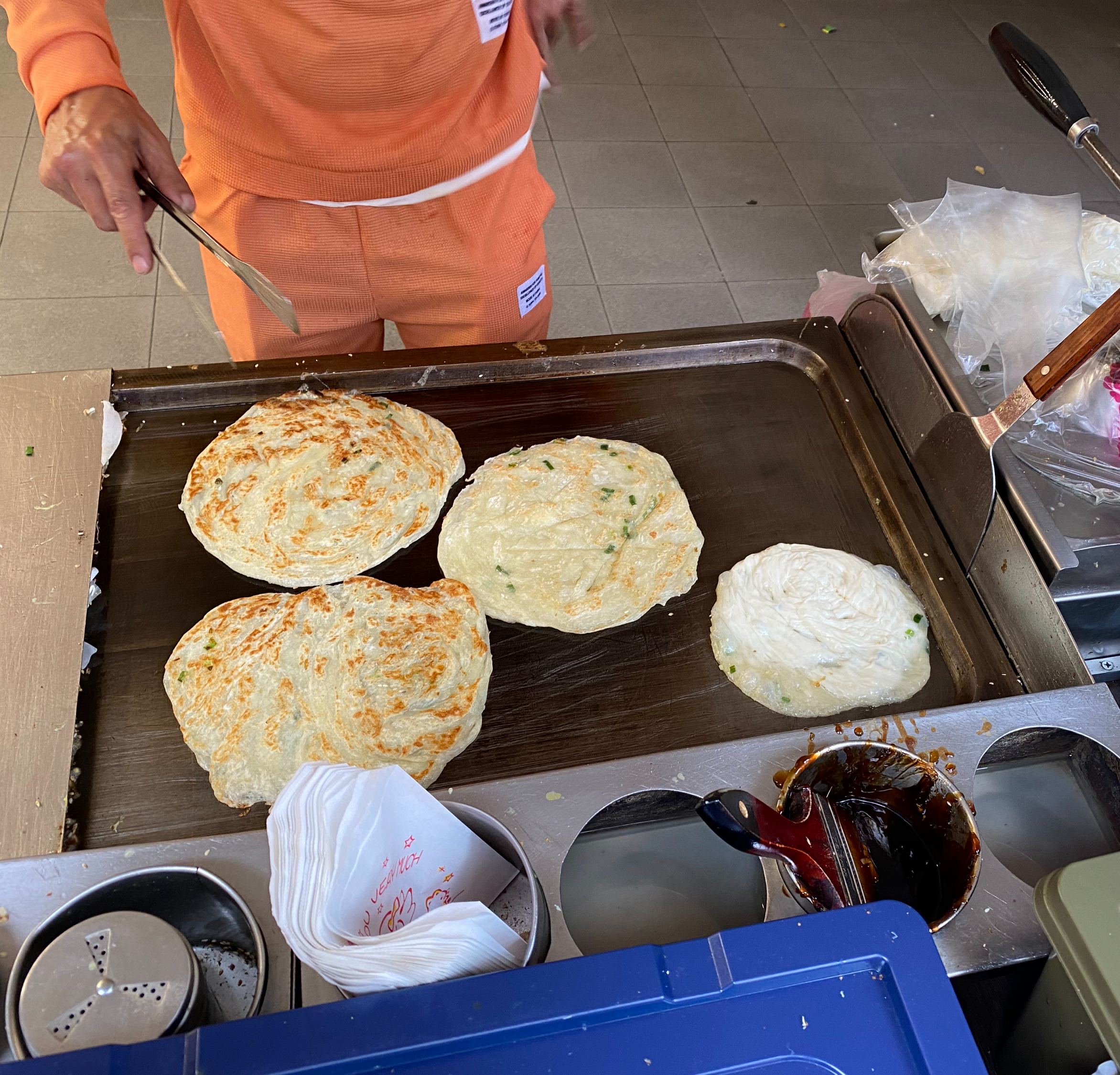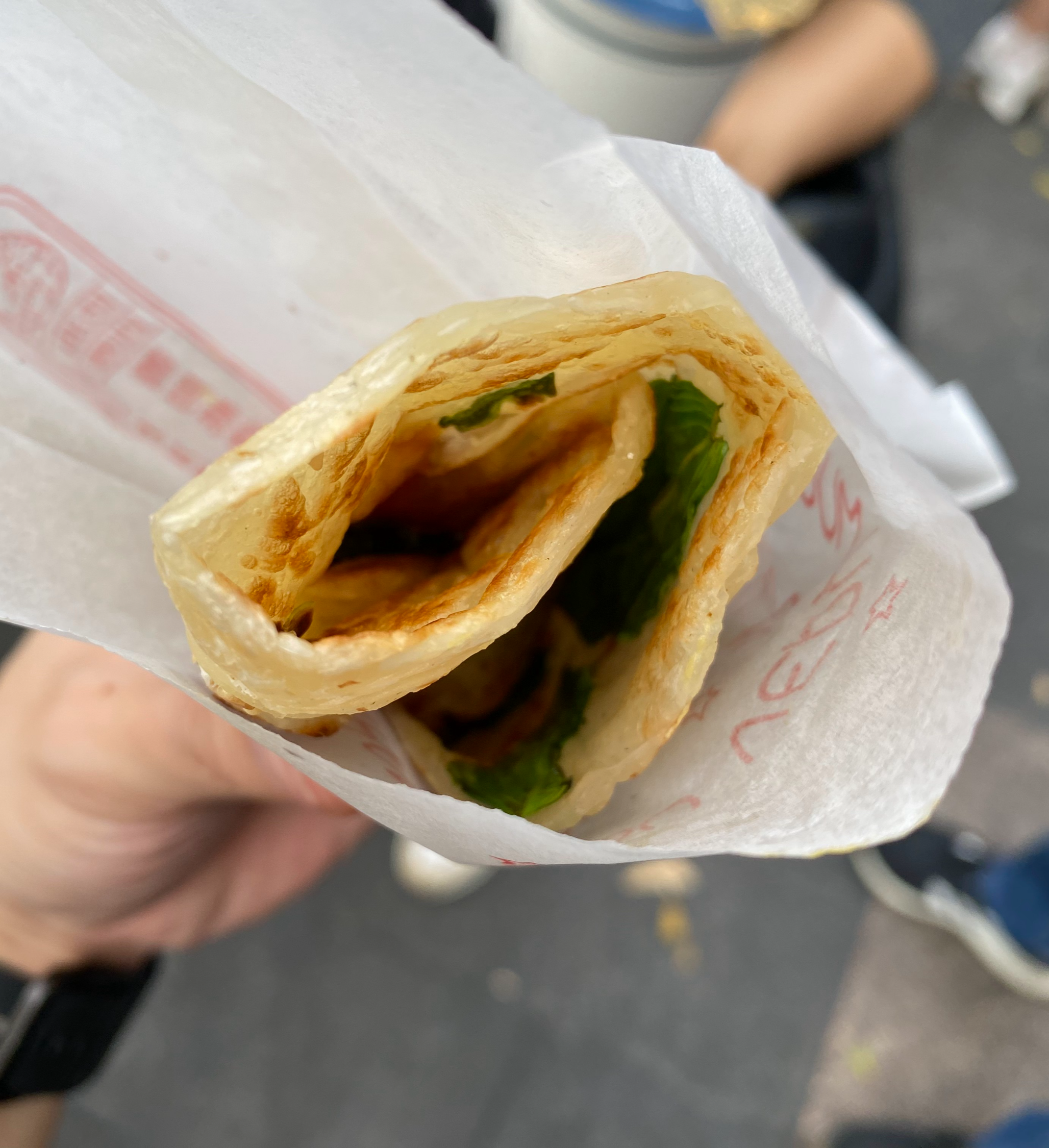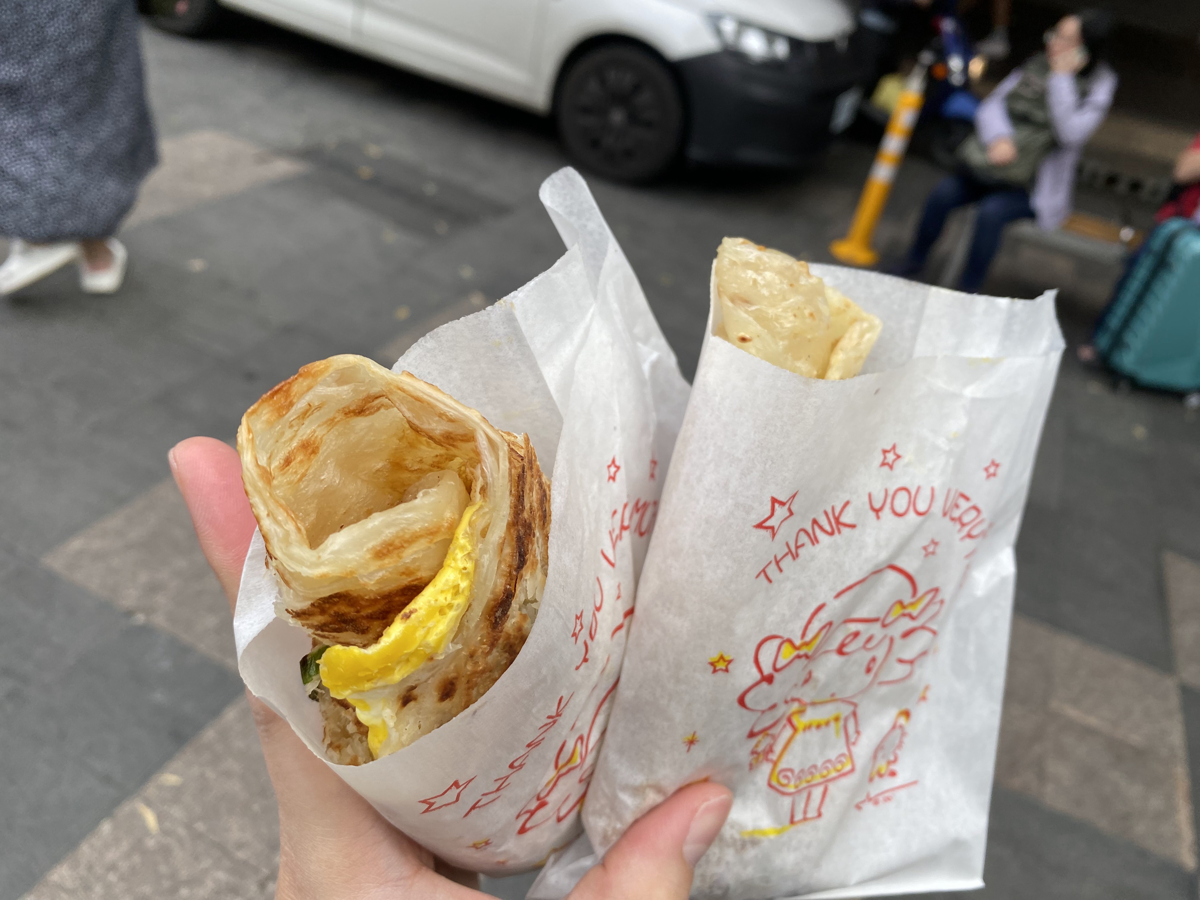 저도 귀국하는 날이다 보니 길거리 음식을 한 가지는 더 먹어보고 싶어서 지나가다 보았던 밀가루 전병을 사 먹었는데요!
