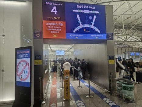 2번 탑승구는 사람이 워낙 많아 30분 정도는 걸리지만, 4,5번 탑승구를 가면 줄이 짧아 10분 이내로 출국 심사를 마칠 수 있었어요~