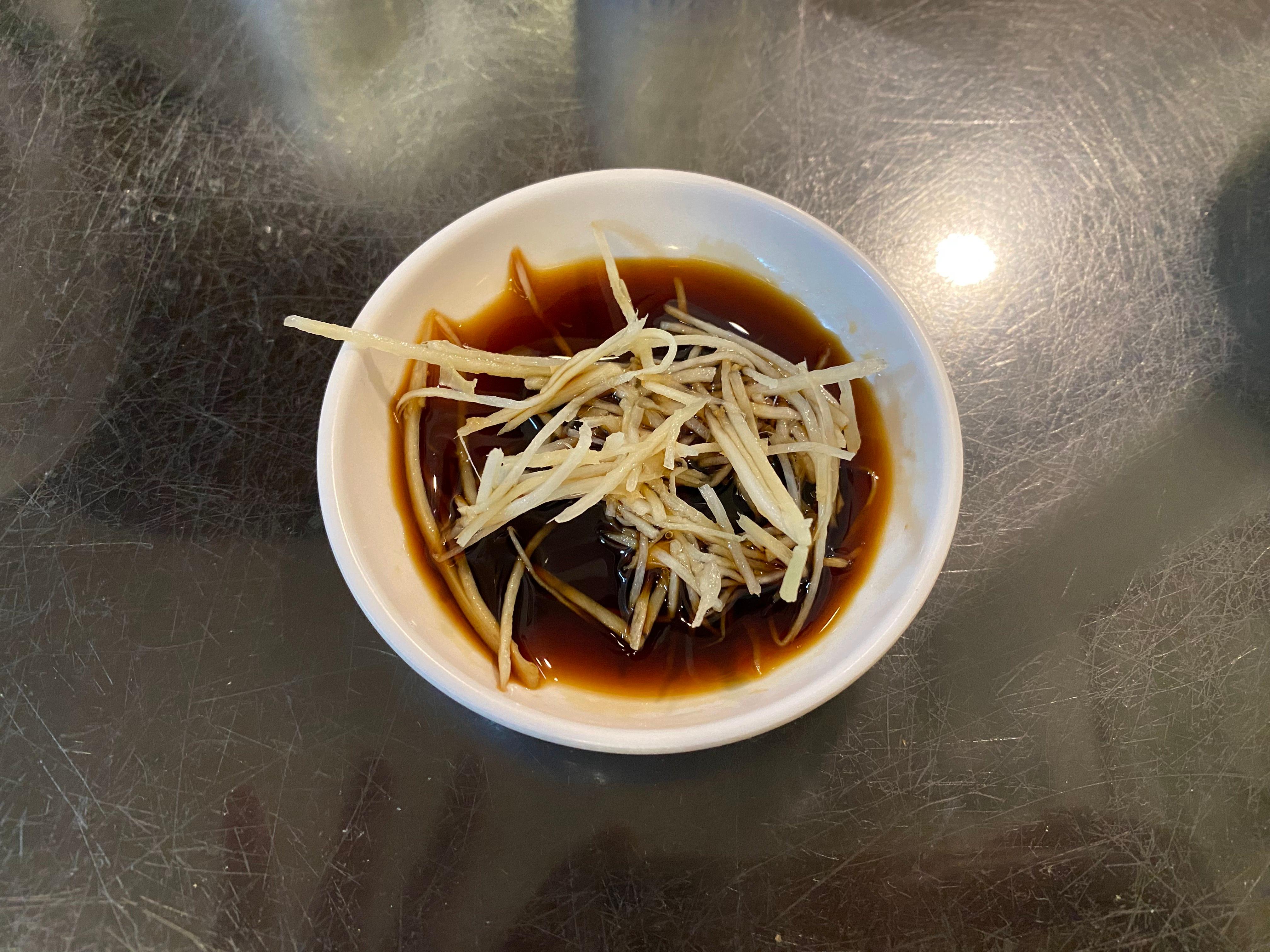 이렇게 간장에 절여진 생강을 만두에 올려서 먹으면 맛이 2배로 맛있어진다는 법!!